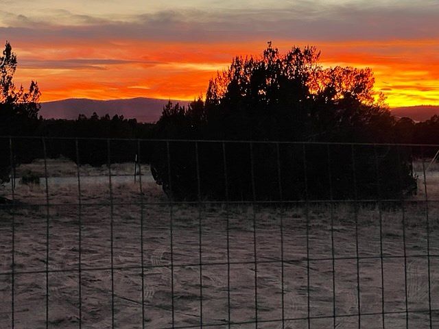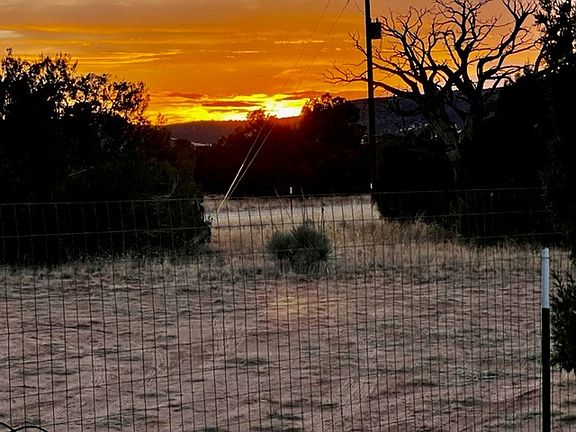 Gorgeous sunsets. READY TO BUILD YOUR DREAM HOME. Sellers have done all the hard work getting this property prepared for a new home. Full perimeter fence and an interior fence; permitted septic, electric has been brought in underground and just needs to be finalized by the County and APS; 20 ft Conex box has been turned into the laundry (washer and propane dryer included); 2500 gallon water cistern is less than 1-yr old. This property is rural yet just 7 minutes to town! Enough trees to maintain your privacy. The travel trailer is NOT included but may be purchased separately.