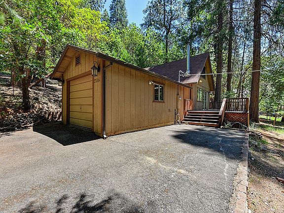Cute Chalet style 2 bedroom one bath home on a little over 1/3 of an acre. Pave driveway to detached one car garage. New septic system 2015. Completely remodeled bathroom 2015. Air conditioner and heater 2015. New Redwood front deck 2017
