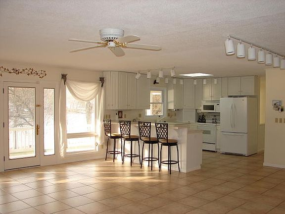 you'll be amazed at the lovely views of the lake offered by this totally renovated 3 bedroom 3 bath contemporary home. Main floor consists of a large open living and dining area with Italian tile and a wall of windows to view the lake. Luxurious master suite with fireplace, deck off bedroom,appliances, breakfast bar, main floor utility room. 2 car garage, Lower level is an open front walk-out basement with 2 bedrooms, beautiful custom bath, family room with wet-bar, , fireplace, and office or den, outside you will find plenty of deck space both up and down for entertaining,,including outdoor bar, hot tub, enjoy the well manicured yard, play on your own basketball court, lounge on the large deck next to the waters edge,, large boat dock,, lighted block sea wall,, this is a great location for fishing and other water sports,, i can't forget to mention the GOLF COURSE just across the lake, this is a members only course, very affordable,,lots of fun,, this is a truly magnificent property,,call today 660-258-2100