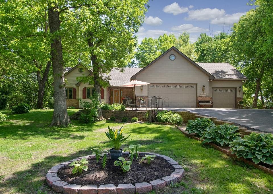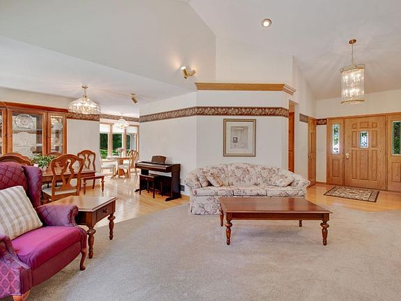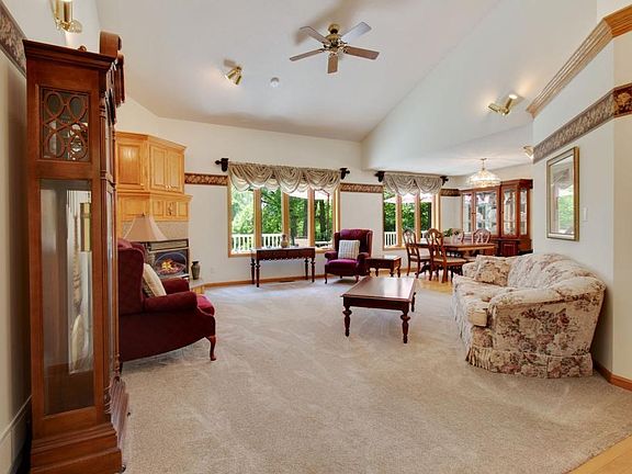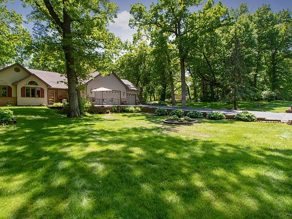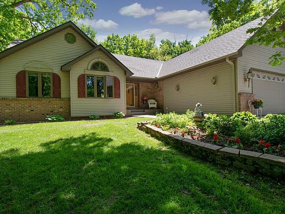 Beautifully well maintained executive style rambler in the sought after Whitestone neighborhood. One level living, 3 bedrooms (4th as converted to office/den, just needs a closet), 4 baths including large master en suite, vaulted ceilings and custom cabinets by Tom Jorden. Updated kitchen has SS appliances and custom lighting. Lower level has 3rd bedroom with a 2 sided fireplace, family room, wet bar and 2 hobby rooms. This house sits on a beautifully landscaped 2.2 acres that includes a pond. Relax on the deck or patio while watching the wildlife. Seller is offering a HNS Home Warranty to buyer.