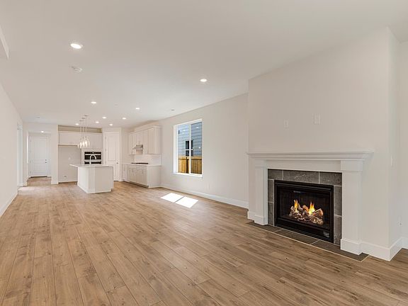 Quick Move-In home available now! Featuring primary on the main, the Iris floorplan welcomes you into a spacious gathering room with gas fireplace, a perfect entertaining space that seamlessly connects to the cafe and kitchen. The upstairs opens to a bright and open loft, complete with three additional bedrooms with walk-in closets, and one with an ensuite! Quartz counter tops, tile backsplash, soft close dovetailed drawer and cabinet construction, nickel hardware, covered patio with gas stub, tiled primary shower, 9' ceilings on lower level, 8' ceilings upper, 5" baseboards throughout. Special financing incentives available when financing with our preferred lender.