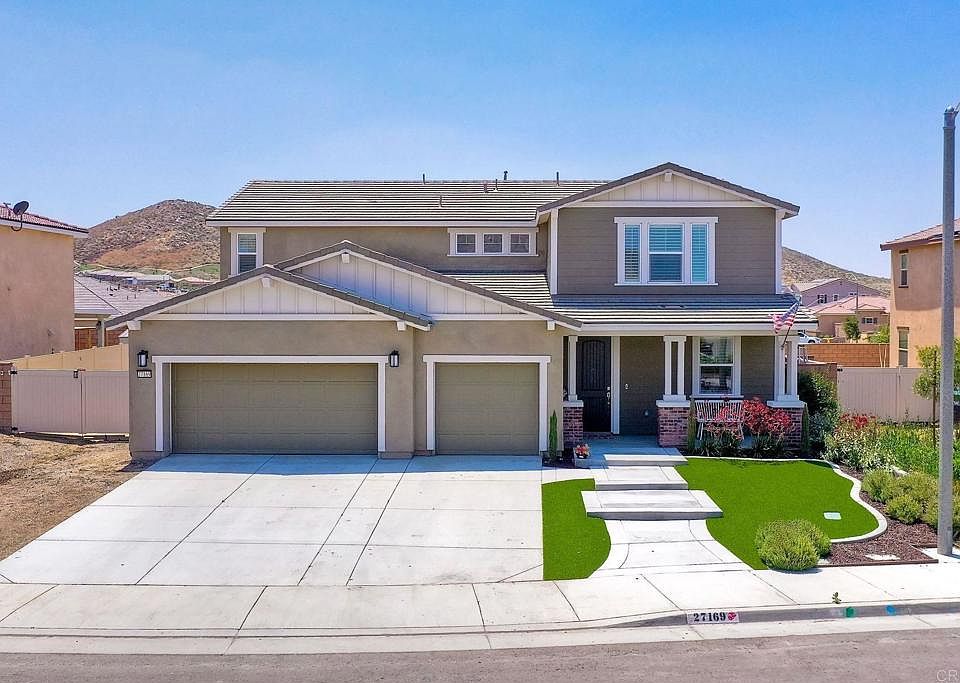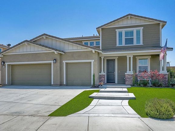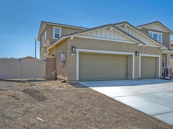 With terrific curb appeal, luxury vinyl flooring, vaulted ceilings, and plantation shutters, this stunning residence offers a bedroom and full bath on the 1st floor, formal dining room, a private office, and loft. The great room delights with a beautiful kitchen, granite countertops, upgraded stainless steel appliances, double ovens, and a large walk-in pantry. The backyard beckons with cement hardscape and turf, ready for BBQs and potential to build out your dream pool. No HOA, solar panels, 3-car garage, room for RV, and close proximity to Remington Park, Boulder Ridge Elementary School, and 215 freeway, this is truly a remarkable home.
