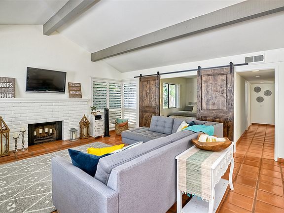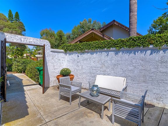 PRIVATE one level La Costa twinhome that lives like a single family! Beautifully located on quiet cul-de-sac, in a park-like setting with mature landscaping. PRIVACY from every part of the property! Large kitchen with brand new appliances, stunning beamed ceilings enhance an open great room with fireplace perfect for entertaining! Lots of windows and natural light. Master Suite with updated Marble Master Bath opens to lush back yard! Recently remodeled backyard with new patio and new sod. No HOA