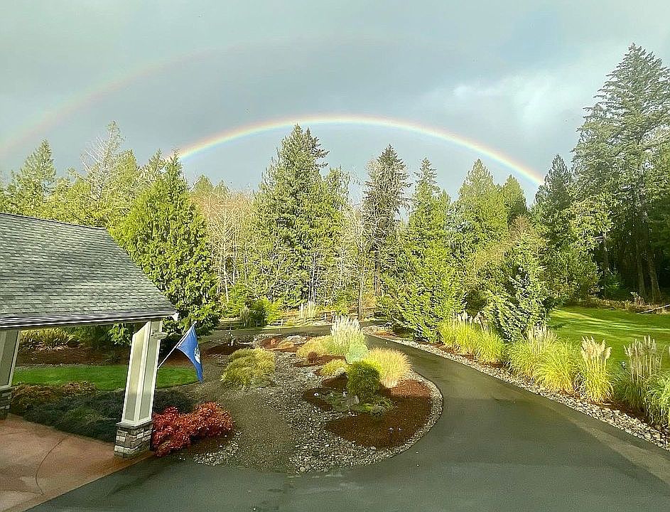 Amazing architecture ,high end finishes, park like setting, great water view of Eld inlet . Wild life includes Eagles, SEAHAWKS , foxes and deer . Screened in patio , Theater upstairs , all bedrooms on ground floor .