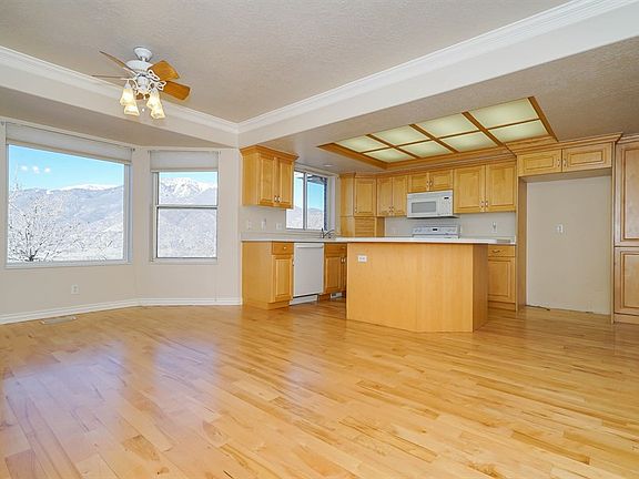 Rambler with views of valley and mountains. This home has everything you need to live on main level with main floor family room and laundry. The basement is walk out with a daylight basement on the north side. Fireplace upstairs is gas burning and there is a wood burning stove in the basement. There are 2 newer water heaters, furnace and a/c unit, gutters, awning and dishwasher. Wood floors in entry and kitchen.