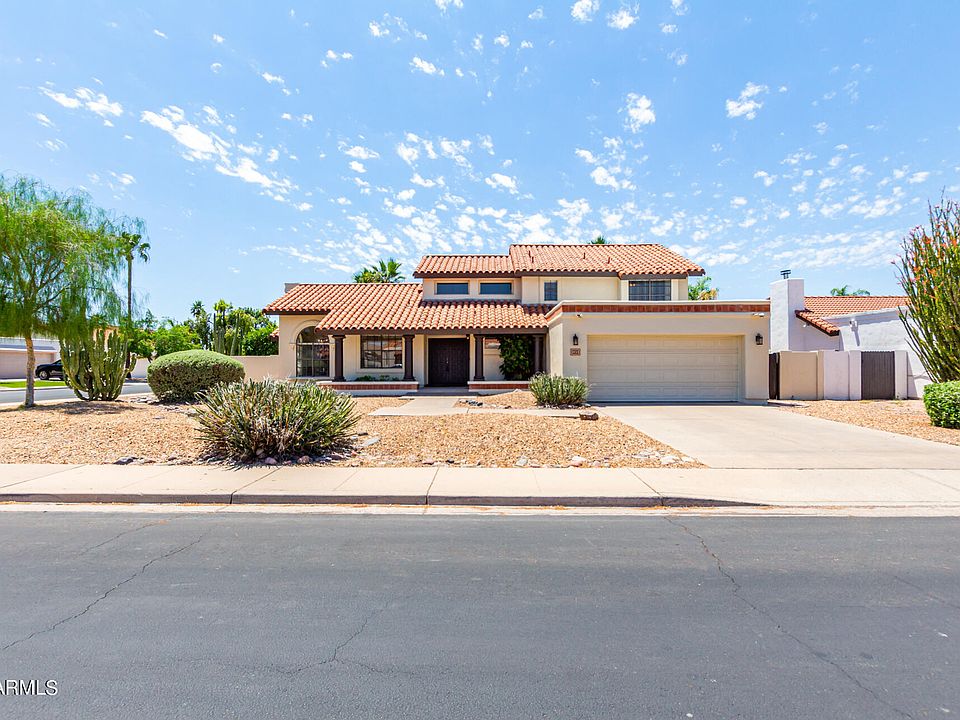 Price reduction! Welcome to this exquisite Spanish-style home nestled in the desirable Rancho de Arboleda neighborhood. Built by award winning builder/architect, Costain, with easy access to to the 202 Red Mountain freeway and with NO HOA. Newer HVAC units, newer fixtures and garage doors, (including mechanical hardware) and newer exterior paint. The sweeping entry features high ceilings with updated wrought iron fixtures and sconces. The interior features art niches, storage closets, deep window casings, tile and newer laminate flooring, creating sophistication and warmth. Enjoy rough hewn beams and a refaced fireplace with built-in bookshelves that add functionality and style. Four sets of French doors span the back of the house, seamlessly merging indoor and outdoor spaces. Step outside to discover citrus trees, a covered patio, barbecue area, a sparkling pool and in-ground hot tub. The kitchen features granite counters, stacked rock backsplash, newer stove/microwave, reach-in pantry and eating area. Retreat to the split primary bedroom or well-appointed additional bedrooms. One bedroom is currently used as a theater room. Painted garage features storage area and service door. Well maintained and ready for your touches!