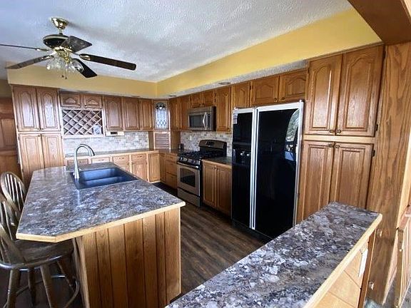 If unique is what you seek, this is the house for you! This log sided home has amazing views of the valley that you can enjoy outside or from the floor-to-ceiling widows inside. Its 4.5 acres create a country setting, yet it's close to town. The oak tongue & grove throughout adds a rustic feel. The modern kitchen has a center island with breakfast bar, built-in wine rack, attractive backsplash & nice appliances. The great room has cathedral ceilings & those huge windows that we mentioned. There's a sunken area that provides a cozy spot to curl up by the fire. The fireplace is surrounded by beautiful cut stone. There are 3 bedrooms & 2.5 baths, the current owners use the upstairs as the master, it's very spacious & has a walk-in closet. There's adjacent bath with jetted tub, double sinks & stand-up shower. The basement includes an integral garage with workshop. It could be finished for more living space if needed. There is also an additional detached garage with another workshop.