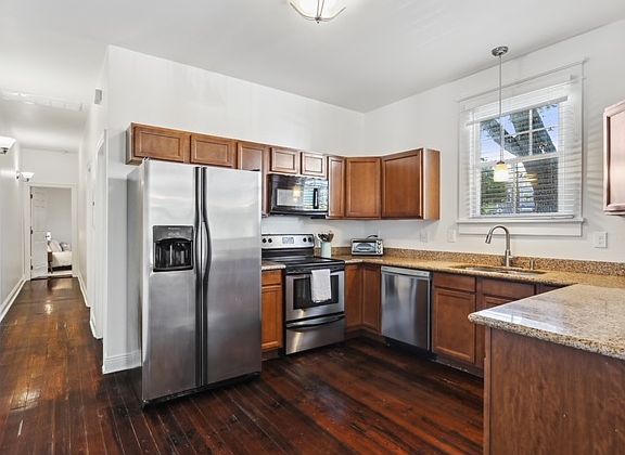 House is on a quiet side street one block off Napoleon Ave. Good size front porch with plants and a comfortable seating area. Backyard is a good size, with lawn and cement, with a propane/charcoal BBQ, fire pit, and dining area as well as additional seating. Great set-up for a movie projector night. Backyard is fully fenced in, with an 8ft tall privacy fence. Come sit on the front porch while you have a cup of coffee or glass of wine in this 2 bedroom, 1 bath right by Freret street corridor. Or relax in the private, fenced backyard while you BBQ and sit by the fire pit after a long day of exploring the city. Classic New Orleans 100 year old house, all original hardwood flooring, comfortable and cozy spot close to everything. ALL UTILITIES ARE INCLUDED.