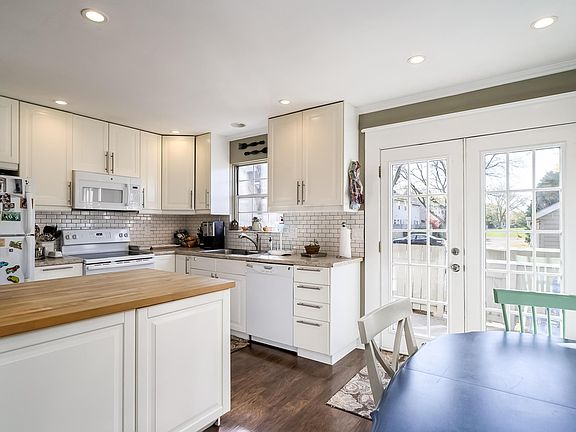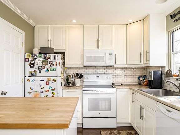 Great END UNIT townhouse with remodeled kitchen, white cabinets, new white appliances, huge pantry, and new flooring. End unit allows for a bit of green space and not neighbors on one side. Open and bright with large windows and french doors facing south. White woodwork, large family room with wood burning fireplace completes a spacious main floor with a ton of designer touches and colors. New half bath with Granite top, open staircase to Huge finished lower level. Lower level ready for added family room, utility room for storage, and large laundry area. Upstairs has white woodwork and doors, 2 very large bedrooms, and plenty of large closets. Well run condo associations maintains attractive common areas in this sought after complex. Designated carport parking.