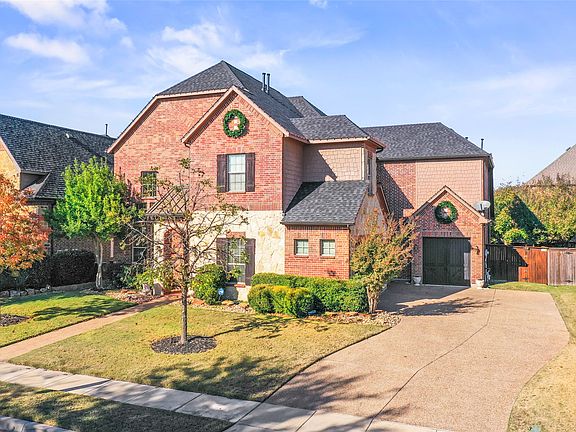 The perfect floorplan for your growing family. Five bedrooms, including the master suite and guest suite downstairs. Three living spaces including main family room with floor to ceiling fireplace. The kitchen is complete with an abundance of custom cabinetry, granite countertops, island seating, stainless steel appliances including double oven and walk in pantry. Game room and fully equipped media room upstairs. Elevated flex space at entry serves well as office, library, music room or additional living space. Private lot adjacent to Corp of Engineers woodlands. Outdoor living includes covered back patio and cabana with extended concrete flatwork. Three car garage parking with multiple Tesla chargers. Recently installed roof and gutters. Easy access to miles of trails, private lakes and over 800 acres of protected park land. Short walk or bike ride to Byron Nelson HS.