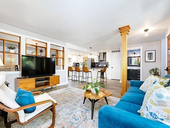 A striking remodeled townhome nestled in a quiet pocket of the North End. Reminescent of the influential California 'Sea Ranch' community, the 80's Modern design features distinguished lines and wood-clad exterior peeking through incredible tree cover. Drawing inspiration from nature, the home underwent an extensive renovation in 2021 to craft an interior of organic modern appeal. Unique tall windows, earthy tones, and filtered natural light integrate the home into its verdant surroundings. Wood-like LVP flows through the main level, seamlessly connecting the living, dining and kitchen for everyday comfort and entertaining. The stunning all-new kitchen features premium cabinetry with soft-close hinges, beautiful granite countertops, large-format tile backsplash, designer pendants, black stainless steel appliances, and a nicely sized pantry. Sleeping quarters are set on the upper level and are accompanied by a fully remodeled bathroom with gorgeous emerald tiled shower and updated laundry room.