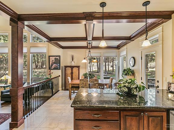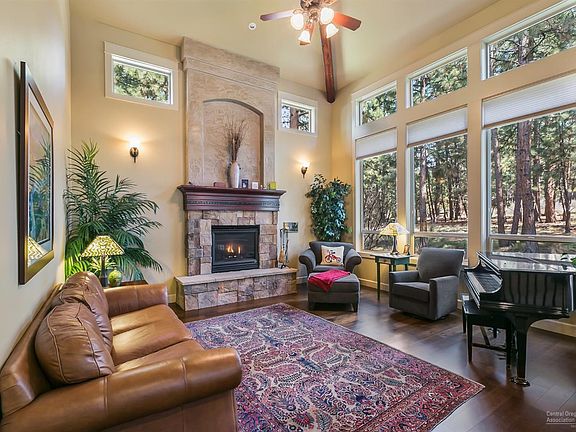 You will love the setting! This beauty sits on a large, wooded, cul-de-sac lot in the premier golf community of Awbrey Glen. Quality built w/ warm & elegant designer features throughout; slab granite, s/s appliances, cherry beams & cabinetry, hardwood, travertine tile & an abundance of built-ins. Main level master w/luxurious bath, soaking tub, radiant floors. Three bedrooms & bonus room upstairs. Enjoy the private & spacious back patio, replete with a tranquil water feature & nature galore. Welcome home!