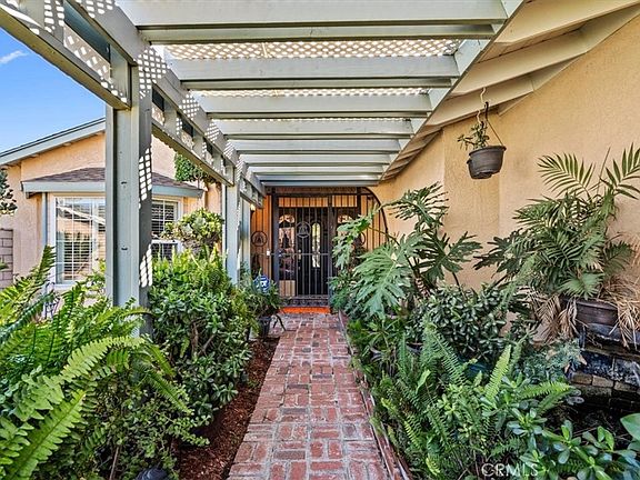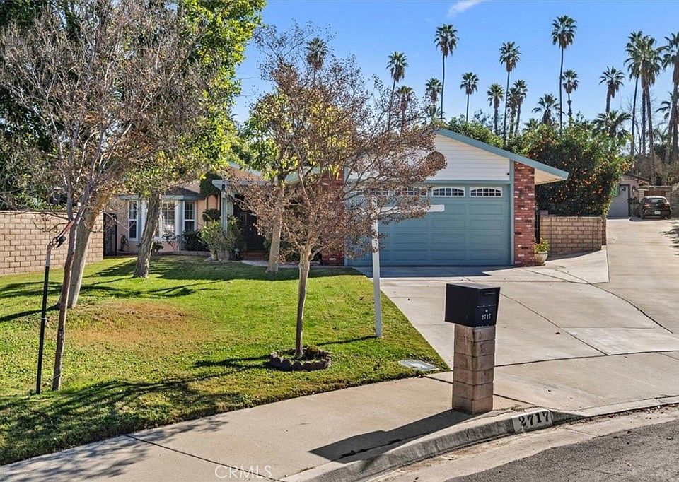 Upon approaching the driveway, one's attention is immediately drawn to a symbolic metal art piece fashioned in the shape of a citrus tree above the garage door. This distinctive marker pairs well with the brick-lined walkway surrounded by lush landscaping leading to the entryway. Between the sound of following water and the interplay of light shining through the lattice-covered entrance, a sensory journey engages sight, sound, and touch. Custom features include a wrought-iron entry gate adorned with rain cross logos. Anchored by a charming fireplace, the living room exudes warmth and invites you to unwind under the vaulted ceilings. As you walk further into the house, you will be greeted by a stunning kitchen that blends style with functionality. The kitchen is decorated with beautiful backsplash tiles and granite countertops. It is a culinary paradise where every dish becomes a work of art. Step into the first bedroom and be greeted by the captivating backyard view through the sleek sliding glass door. Each bedroom can experience the beauty of nature as you relax in the comfort of your private space. A second fireplace graces the primary bedroom, creating a retreat where relaxation knows no bounds. You'll find primary is full of surprises as you step into your walk closest and begin to notice a mystery door is perfectly covered up by the cedar-planked wall. The mystery door leads into a secret room for storage of your safe and file cabinets or special treasures. Venture outside to a backyard oasis that seamlessly blends nature and entertainment. Citrus trees, laden with the sweetness of oranges and the richness of avocados, punctuate the landscape. The backyard jewel is undoubtedly the refreshing pool and spa, promising endless relaxation and enjoyment. A covered patio wraps around the backyard, offering a perfect retreat from the hustle and bustle of everyday life. A serene pond enhances the peacefulness of the surroundings, while a she-shed and greenhouse provide a source of inspiration for creative moments. And if that wasn't enough, wait until you see the impressive 4-car tandem garage! This is perfect for car enthusiasts and storage enthusiasts alike, with its checked patterned tile floors adding a stylish touch. The garage also features a walk-in pantry that adds a touch of convenience.