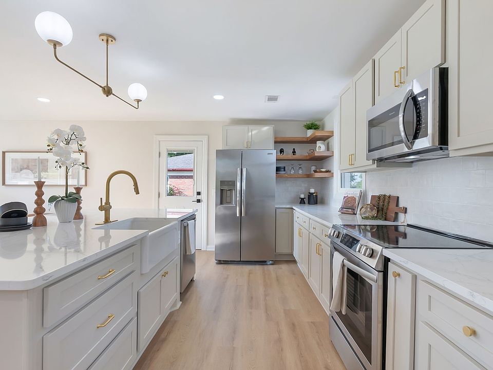 New Price Adjustment! A stunningly reimagined mid-century home perched atop a serene hill in Fortland Park—offering tranquil views and exceptional walkability in one of East Nashville’s most vibrant neighborhoods. Originally built in 1963 and fully renovated in Spring 2025, this 4-bedroom, 3-bath residence seamlessly blends classic charm with modern design and functionality. Inside, you’ll find a bright and cohesive interior featuring a fully reconfigured kitchen outfitted with brand-new custom cabinetry, quartz countertops, stainless steel appliances, and a deep farmhouse sink. The open-concept layout flows effortlessly into expansive living and dining areas—ideal for entertaining or quiet evenings at home.