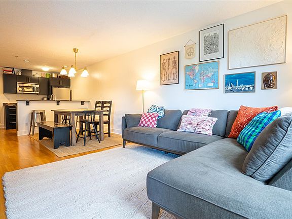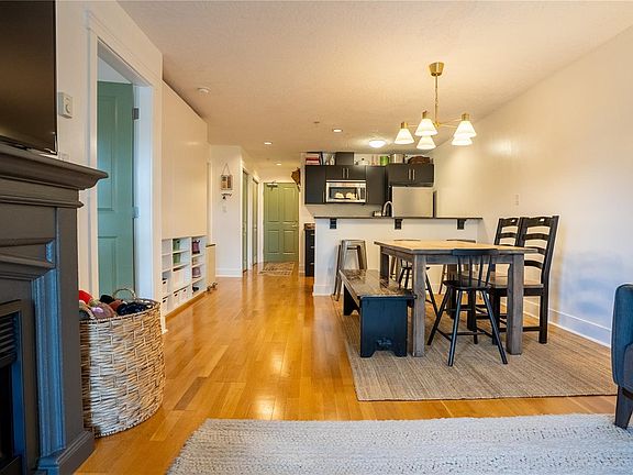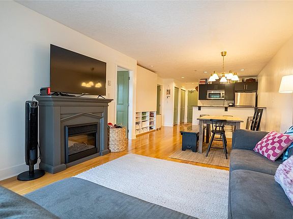 West-facing balconyElectric fireplaceOpen-concept layoutStainless steel appliancesTile backsplashFunctional islandWalk-in closet