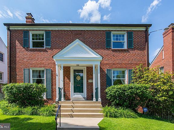 Storybook brick Colonial in sought after Chevy Chase sited on a nice wide lot with fenced backyard and detached garage. Fabulous renovation to include a striking kitchen with grey cabinets, white quartz counters, gorgeous mother of pearl inlaid marble back splash, island with seating for 4, beverage fridge, 2nd prep sink, and handsome exposed wood beams running the length of the kitchen. Just off the kitchen is the main floor powder room and entry to the large living room with built-ins and wood-burning fireplace. The main level is completed by the entry foyer with coat closet, dining room with chair railing and rear heated sunroom/den with door to the deck. Upstairs are 3 generous bedrooms and 2 fully renovated baths to include a master en-suite. Fixed stairs from the hall lead to the attic that could easily be finished. The lower level is divided into a rec room and storage/laundry/utility/bath space. Replacement roof and windows. Steps to the trails of Rock Creek Park and Metro bus at the corner. Lafayette/Deal/Wilson School Cluster. Not to be missed!