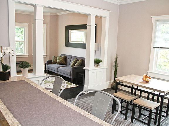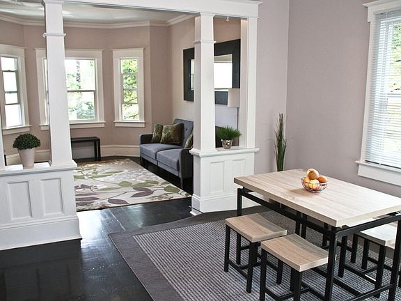 Fully renovated, beautiful 2 bed/1 bath, Large living space, includes living room, dining room, open kitchen w/bar, has huge brand new windows, lots of natural light throughout the whole house, brand new tiled bathroom w/tub, all new fixtures, central heating, crown molding throughout, has front and back door to enter and located near the popular South Waterfront. We are just minutes from all downtown attractions, public transportation, PSU and OHSU. Our charming apartment was designed to make the most of the neighborhood and give residents easy access to the very best of the SW Downtown district, shops, and eateries. Just a few blocks to get to the city's new light rail system. If you are a student at OHSU, our apartment is just minutes away from the aerial tram which takes you directly to the schools campus. If you work or go to school downtown, you can walk or ride your bike! Our apartment is a fully renovated 2 bedroom 1 bath, huge, new hand crafted kitchen cabinets w/tons of storage space, new granite counter tops, fully equipped with brand new stainless steel appliances, beautiful Douglas Fir wood floors, and brand new washer/dryer in unit! The property has a backyard for BBQ, entertaining, and walking your dog with gazebo and seating areas. Owner pays Trash, Water and Sewage