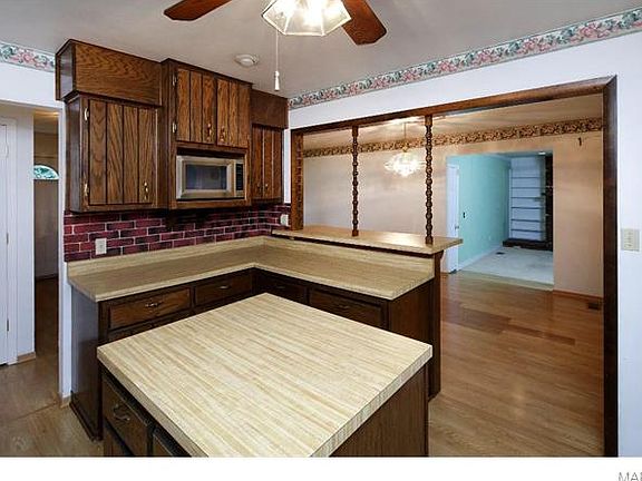 RANCH home, yes a ranch on .34 acres, situated on a quiet dead end street and conveniently located near McNair Park, Lindenwood College, Hwy 70 and 370. Location, Location, Location....and....features living and dining rm. Flanking the dining rm is a family rm with built in book shelves and F/P. The kitchen offers gas stove/oven, dishwasher, microwave, refrigerator, center island and pantry. Off the fam rm a screened in porch overlooking a large fenced rear yard on a tree lined lot. The master bdrm offers a full bath for privacy. Additionally 2 bedrooms share a recently remodeled large hall bath, updated 6 panel doors, newer roof, hot water heater, and double hung vinyl windows. Take advantage of the MFL or LL if you prefer. LL boasts lg rec area, half bath, storage area w/shelving and a sleeping area. Recently the carpets have been professionally clean and exterior has been power washed. Exterior requires lower maintenance with mostly brick front, vinyl siding and enclosed facia/soffit.