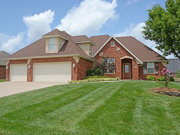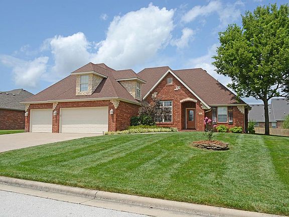 2717 W. Trevor Trl. Ozark MO 65721Well-manicured all-brick home on a large lot in Ozark schools. With four spacious bedrooms, a large dining area, and an oversized three car garage, you'll have plenty of space to call home. Features include inground sprinklers, security system, vaulted ceilings, and custom blinds throughout.