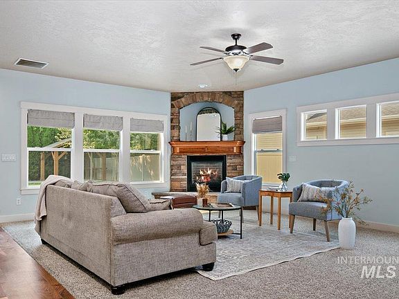 Step into this immaculate gem, where charm and elegance meet modern comfort. A stunning wraparound porch, stone accents, and mature landscape. Inside, you’ll fall in love with the real walnut hardwood flooring, soaring ceilings, and a spacious living room bathed in natural light. The remodeled kitchen is a chef’s delight, boasting new granite countertops, a tile backsplash, a new sink, rich walnut cabinets, stainless steel appliances, a breakfast bar, and a cozy dining area. A main-floor office/den offers flexibility for work or relaxation. Upstairs, the primary suite awaits with vaulted ceilings, a private bath featuring a large tiled shower and a soaking tub for ultimate relaxation. The versatile 4th bedroom doubles as a bonus room with its own half bath! Two additional bedrooms offer charming bay windows & built-in shelving. Escape to your serene backyard, perfect for evening BBQs or fireside gatherings under the pavilion. This home provides a private and safe space for relaxation and play.