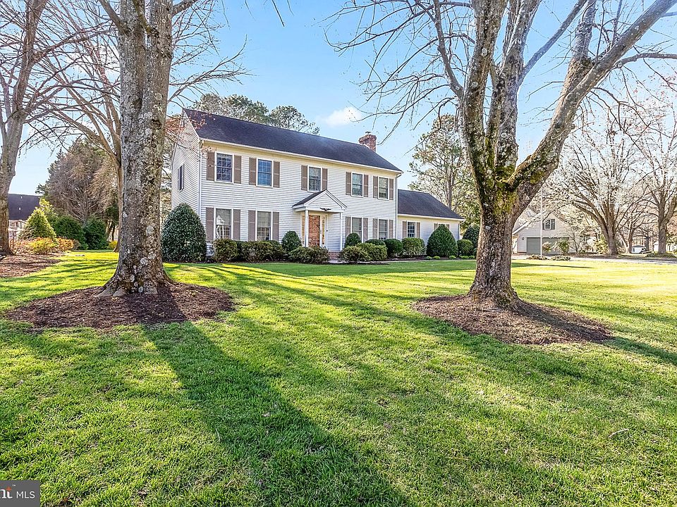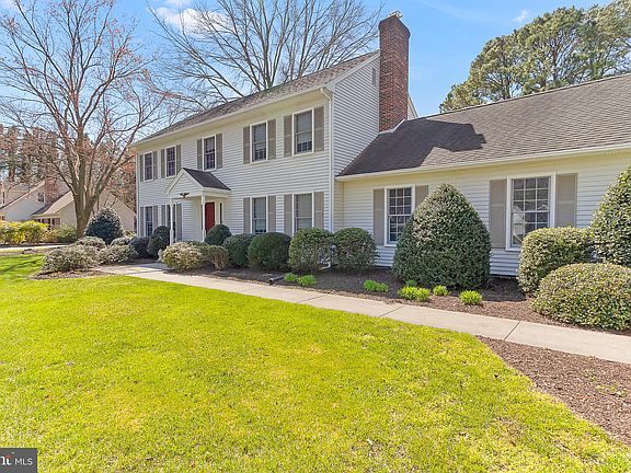 Welcome to this beautiful Centennial Village Home. This 4 bedroom 2 1/2 bath home on a corner lot features many amenities. This lovely home has been meticulously maintained and has many features for the discriminate Buyer. As you arrive at this wonderful stately home, you will notice all the mature, well-maintained landscaping and oversized lot, that has a 4 zone in ground sprinkler system. Upon entering the 2-story home you are welcomed by the tiled foyer, with direct views to the back yard and all the greenery that exists. Moving to the left of the foyer is a lovely living room with plenty of natural sunlight and sets the tone for the elegance of this house. As you move through the living room you enter a formal dining room which features a custom built in corner cabinet. The flow of this house leads you into the open layout of the kitchen, which features an overabundance of cabinets and features a stainless French Door Refrigerator, to match the rest of the appliances. But, for the chef in your life, there is an island with plenty of oversized drawers to accommodate all your baking and cooking needs, not to mention a special cabinet that lifts your mixer up for use. The brightness of this room is accidented by the bay window looking out to the large lush backyard. From the kitchen you flow seamlessly into the family room which has a brick wood burning fireplace with plenty of built in bookcases. This room easily facilitates wonderful conversations and a place where memories are displayed. Adjoining the family room is the tiled sun room with Anderson Casement Windows all around and a door leading out to the brick patio for your outside enjoyment. Now going up to the upper level, you have your Primary Suite which features an oversized bedroom with a walk-in closet and attached bath featuring double bowl sinks, custom cabinetry with plenty of storage and a tiled step in shower. Walking down the hall which features 3 more bedrooms and a hall tiled bath with a tub shower combination. This house has a walk-up floored attic with plenty of storage and head room. The home also features a laundry room with storage closets and a door leading directly to the garage. As a bonus, the house has an additional stick built 2 car garage with stairs leading up to the attic space for storage. This house features convenience to all Salisbury has to offer and is a short ride to the beaches also, and the community HOA amenities include a child’s playground, basketball, and tennis courts.