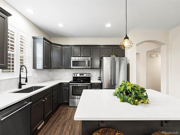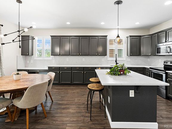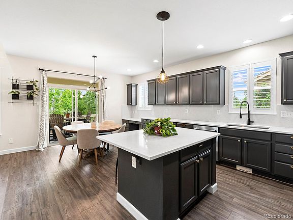 Welcome to Southshore, one of Colorado’s premier lake communities in Colorado! Situated in a desirable location, this well-maintained home offers a perfect blend of comfort, style, and functionality. As you enter this elegant home, you are greeted by a spacious and light-filled living room with an open floor plan that seamlessly connects the living room and dining area. The modern kitchen is a chef's dream, equipped with stainless steel appliances, ample cabinetry, and a large island perfect for meal preparation and casual dining. The adjacent dining area is ideal for family meals and entertaining guests, with easy access to the outdoor deck where you can enjoy al fresco dining while taking in the picturesque views. Work from home more your style? The beautiful office space on the main floor with French doors is the perfect spot! The primary bedroom suite is a true retreat, featuring large windows that frame the beautiful mountain vistas. The ensuite bathroom boasts a luxurious soaking tub, a separate walk-in shower, and dual vanities, providing a spa-like experience in the comfort of your own home. Two additional bedrooms on the second floor + a loft offer generous space and flexibility, perfect for family members or guests. The finished walkout basement adds significant living space and versatility to this already impressive home. This expansive area can be used as a family room, game room, or home theater, and also includes the 4th bedroom, bathroom and plenty of storage space. Gorgeous mature trees, low maintenance turf and a hot tub completes this beautiful backyard. This home offers the perfect blend of luxury, comfort, and natural beauty, all within a desirable lake community. With an easy commute to the DTC, DIA and Downtown Denver, you'll be able to move in and enjoy Southshore's miles of trails, the nearby Lakehouse, amazing amenities (including a brand-new pool and club house), gorgeous views + top-rated schools. You are going to LOVE living here!