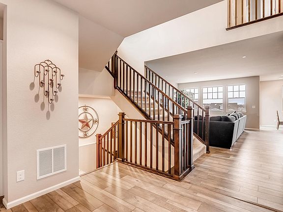 This beautiful better than new home is in a highly desirable neighborhood cul-de-sac. A rare 5 bedroom/5 bath with beautiful custom finishes throughout and a walk out basement! The open concept floor plan is flooded with natural light and is perfectly accented with designer upgrades. The elegant open concept kitchen has a double-sided fireplace and also includes a large prep island, plenty of cabinet space, granite countertops, and stainless steel appliances. The master suite includes lovely views, a soaking tub and his and hers walk-in closets. Laundry is located on 2nd floor along with bedrooms. You will love the Southshore Community; with miles of trails, parks, outstanding schools, a rec center with a salt water infinity pool, fitness center, clubhouse, and access to the Aurora Reservoir within minutes. All the shopping you need is just minutes away. Act on this one quickly as it is priced to sell!