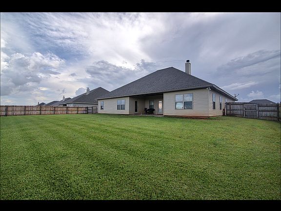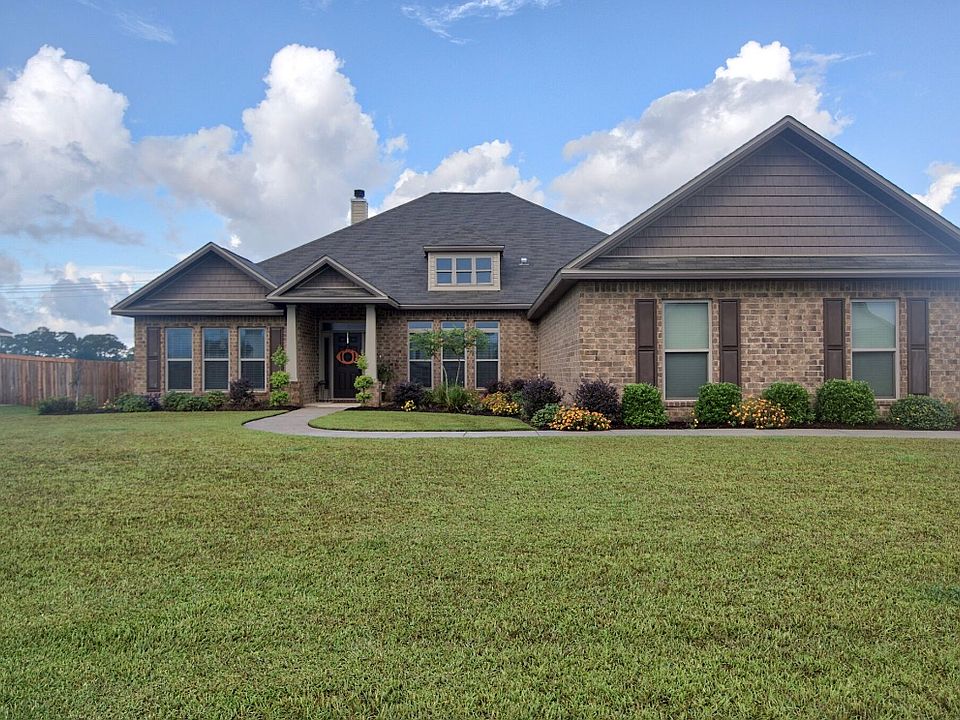 Enjoy the quit life of country living yet be close to I-10, Eastern Shore Center and Foley Beach Express Way. This popular Mila plan has plenty of room on both sides of the 101 foot wide X 180 foot deep lot. Only a field is behind this lot. Sit on your covered back porch and watch the cotton grow. The Kitchen, Eat-in Breakfast area and Great Room are all connect for enjoyable community living. This massive community space is warmed by a corner wood-burning fireplace. The 14 X 20 Master Bedroom allows plenty of room for a sitting area and large furniture. If you work at home or need a separate game room the 14 x13 Study makes a perfect space. The Double French doors make this room more private. The other three bedrooms are ample for other family members and are all close to full baths. Large windows in these bedrooms make the rooms bright. All bedroom light switches are double-block wired for a fan & light combination. Protected parking is ample with the 3-car, Side-entry Garage. The driveway is also extended beyond the garage far enough to accommodate two more vehicles.
