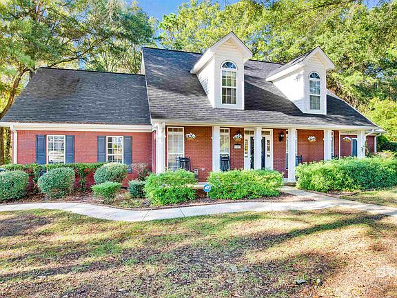 Welcome to Creekside, a picturesque, well-established neighborhood where Southern hospitality meets modern convenience. Nestled beneath mature trees, this community boasts sidewalks connecting you to downtown Daphne, the YMCA, and beyond—perfect for daily walks or an active lifestyle. This traditional brick home exudes charm & functionality, with a bonus room over the garage that could easily serve as a 5th bedroom. Situated on a corner lot, the location is unparalleled, offering quick access to local schools, grocery stores, I-10, and nearby shopping & dining in Malbis. The inviting front porch, spanning the width of the home, is perfect for morning coffee & evening visits with friends & neighbors. Inside, the dining room showcases timeless elegance with wainscoting & crown molding. The kitchen blends style & practicality with painted cabinets, a crisp white subway tile backsplash, granite countertops, stainless steel appliances, and a breakfast bar. Its open layout seamlessly flows into a cozy breakfast area with a bay window overlooking the serene backyard. The spacious great room is the heart of the home, complete with a trey ceiling, crown molding, and a gas fireplace—perfect for gathering with loved ones. The oversized primary suite on the main level offers a large ensuite bath featuring dual vanities, a separate shower, high ceilings, and two walk-in closets. Upstairs, 3 generous bedrooms & a bonus room with built-ins & a charming window seat provide ample space for family or guests. Modern updates include a FORTIFIED roof (2020), tankless water heater (2019), and a 2019 AC unit. The outdoor space is equally impressive, with a deck overlooking a private, fenced backyard surrounded by natural beauty—ideal for entertaining or enjoying peaceful moments. A well provides irrigation for the landscaping, and the garage includes a workshop area and abundant attic storage. Located in the heart of Daphne, come experience the warmth of Creekside living today! Buyer to