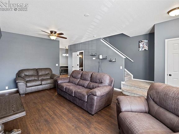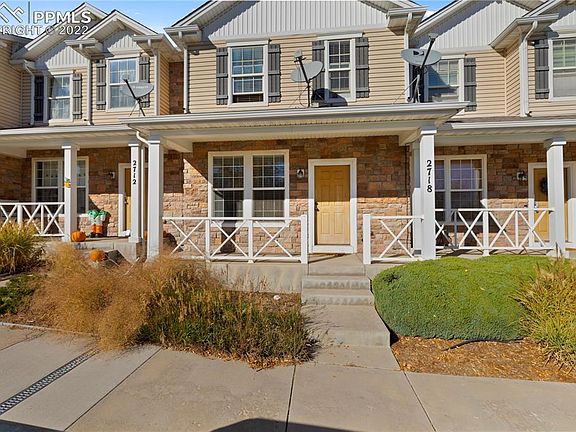 Designed to make you fall in love with the natural beauty of this townhome of the Bluffs at Spring Creek. This beautiful townhome features newer laminate floors, a spacious living room, nice dining area with walk-out to back yard. The kitchen has plenty of cabinet space. The laundry room is upstairs for your convenience and washer and dryer are included. The two bedrooms are located upstairs to give you privacy. This beautiful townhome is walking distance to the park and minutes from I-25, downtown, schools, shopping, and Fort Carson. This townhome includes all kitchen appliances. This property is priced to sell fast.