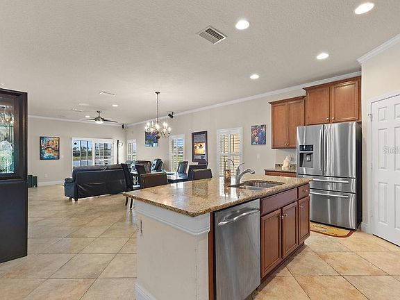 GORGEOUS Smart home with GE Stainless Steel Profile Appliances, Granite countertops, 42' wood cabinets as well as crown molding through the living areas & Master suite. LG Washer and Dryer, Kinetico reverse osmosis, Nest thermostat, August smart lock and door bell cam ALL included! Custom made Plantain shutters, solar heating panels, Spa, Pool enclosure, with a built in table inside the Pool! Beautiful Pond view! 18" Porcelain tile through the whole home. NO CARPET! Energy efficient home is located in Stonebrier with gated access, Clubhouse, Gym and playground included with fees.