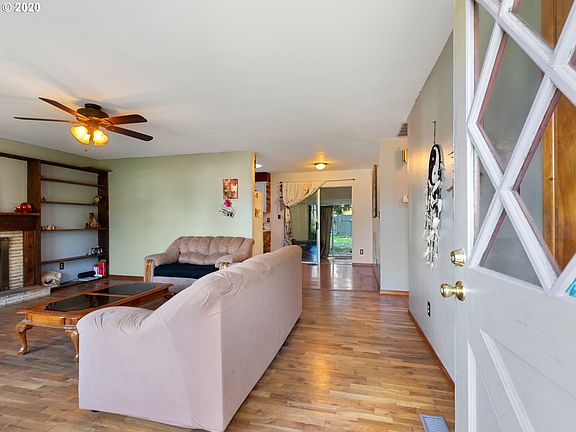 Cute single-level, ranch style home that lives large. Cozy living room with fireplace, built-in bookshelves. Nice galley kitchen with all appliances included, desk space. Large laundry room includes W/D and built-in storage. Features 2 bedrooms/1.5 baths, hardwood floors, central A/C. Bonus room with new carpet, new paint. Generous, fenced backyard. Great location, close to schools, community park, easy access to I-5.