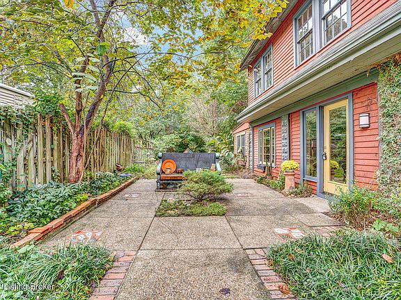 Living the Dream in CRESCENT HILL....Renowned potter Sarah Frederick, who delighted our artistic dreams with her universal sought after pottery is offering her creative and private abode to someone special. Call your artistic friends, your writers, your nature enthusiast buyers that want to live in a unique and private property. This treasure is tucked in lush greenery on a street with only two houses, talk about PRIVACY....walk out your deep, wooded backyard to lively FRANKFORT AVENUE with famous eateries, wine rack, book store and library. Warm hardwood and loads of light on second floor. This home could easily have 3 bedrooms/2 baths with minimum alteration. (One room has egress window to studio/not outside) therefore it can't be called a bedroom). Situated on an extra deep wooded lot, room for carport...pool...addition...and most happy life. Take this beauty to the next level, a few TLC items are left for you to put your personal stamp on this wonderful home.
