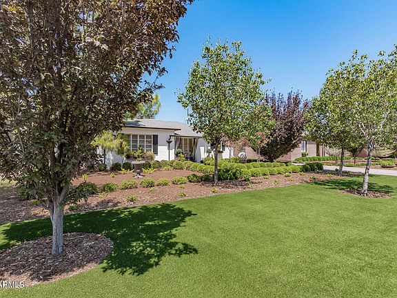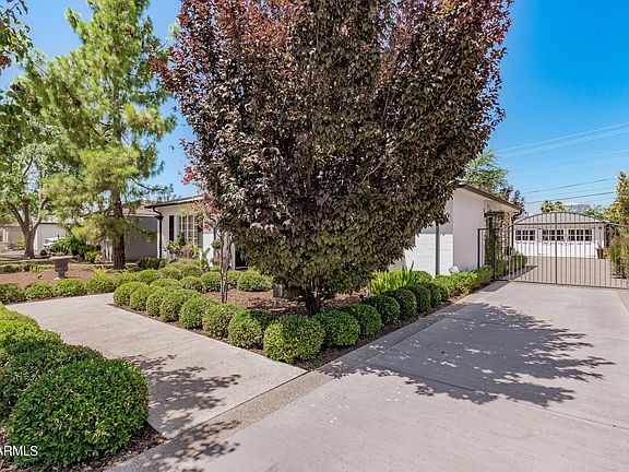 The gated driveway entry features an aggregate concrete floor that can serve as an additional entertaining space, providing direct access to the kitchen. The spacious two-car garage offers potential for conversion into a casita or cabana, as the extensive driveway accommodates multiple parking spaces.