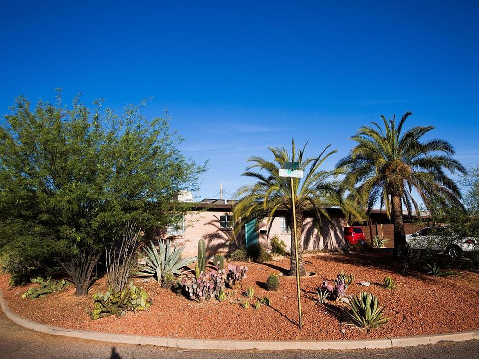 Great Adobe brick home close to mountain bike path. Fantastic corner lot in wonderful private circluar neighborhoood. Solar panels. Fresh interior paint, updated kitchen counters and sink, lovely large patio and backyard for outdoor Tucson living. Tile throughout. Lovely fireplace in the living room with floor to ceiling glass looking out into the inviting backyard space. High ceiling in the kitchen and living room. Starter home, investment home, student home. Anyway you look at it, it's a wonderful home!!! Loans for home and solar are both assumable.