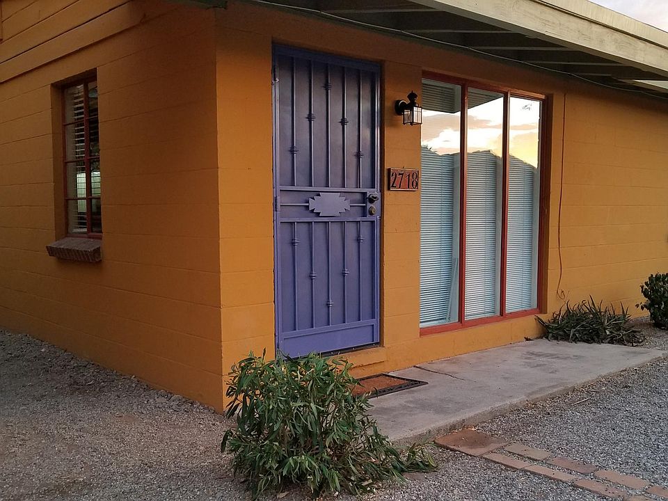 Shown only by appointment. This adorable apartment is hidden away from the street in the middle a four-plex. Only one shared masonry wall. Windows on three sides. Two off street parking spaces. Floor to ceiling windows with wooden blinds in the north-facing living room. High beamed ceilings. Lots of sun light and quiet. Oak cabinets in the kitchen. Refrigerator and gas stove. Two bed rooms, one bath. At 600 square feet, it's itty bitty, but still, my tenants happily stay for years. The floors are ceramic tile. Ceiling fans in the bedrooms and living room. Central air conditioning and gas heat. Each of the four apartments has its own washer and dryer in its own laundry shed. Small unenclosed back yard. "Solar dryer" (clothes line) near your private laundry shed is shared with one neighbor. A mile and a half north of the U of A near the Mountain Avenue bike path. Two blocks from Albertson's, Raging Sage, Beyond Bread, Lovin' Spoonful, Baja Cafe, Blue Willow, The Folk Shop and lots of other cool stuff on Tucson's real main street, Campbell Avenue. Rent is $1,100 per month, but if you pay before the first of the month, you can pay $1,090. Deposit is $1,200. Your lease would go through June 30, 2026. Lease is renewable in one year increments. I pay for water, you pay for gas and electric. You must be self supporting, have good credit and good landlord references. No smoking and no pets. Owner/agent is the property manager. Equal opportunity housing. Rent is $1,100 per month, but if you pay before the first of the month, you can pay $1,090. Deposit is $1,200. Your lease would go through June 30, 2026. Lease is renewable in one year increments. Rent will be paid in one monthly Zelle payment. I pay for water, you pay for gas and electric. Two off street parking spaces. You must be self supporting, have good credit and good landlord references. $35 non-refundable application fee for credit and background check. You must change the furnace filter and check for plumbing leaks every three months. No personal property can be stored outside your apartment. No smoking and no pets.