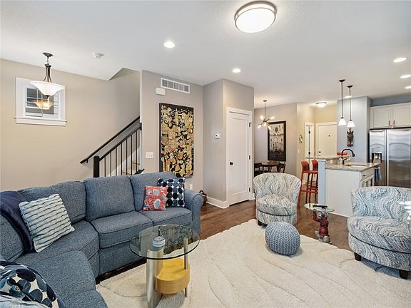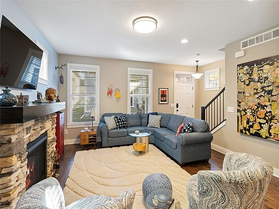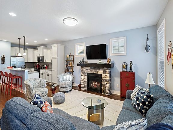 Detached townhome w/over 2000 sqft of finish at the Commons at Boston Park! Open floor plan w/9' ceilings, wood flooring throughout main level, center island in the kitchen w/granite counters, white cabinetry, and stone front fireplace. Primary suite with large walk-in closet, bathroom with tile shower & spacious double sink vanity. Spacious 2nd & 3rd bedrooms w/ Jack n Jill bathroom. 2nd level laundry area w/extra storage space. Finished lower level w/large family room, 3/4 bathroom & extra storage. The lawn has irrigation & the location is incredible near Shuler Elementary, Clive Park, trails, shopping & restaurants! Low cost monthly association fee that covers snow removal & lawn care.