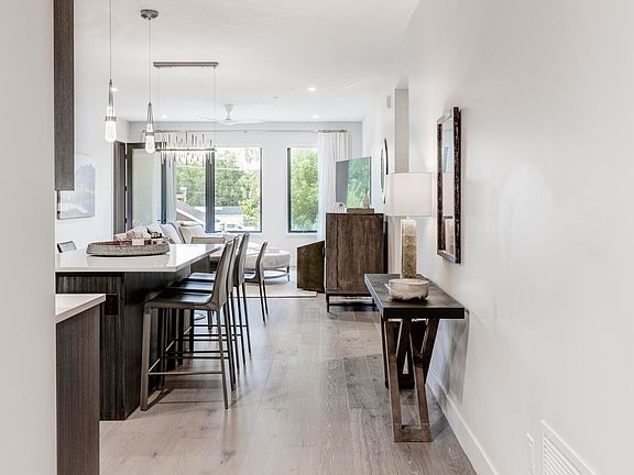Modern bliss emerges in this single-level residence situated in a boutique building. An open floorplan unfolds w/sleek design and fine finishes throughout. The home chef's workspace awaits in a stylish kitchen beaming w/KitchenAid stainless steel appliances, quartz countertops and under-cabinet lighting. Illuminated by pendant lighting, a vast center island w/seating offers plenty of prep space. An elegant dining area crowned by a contemporary light fixture flows into a living area w/outdoor connectivity to a spacious covered deck. Enjoy sipping morning coffee outdoors while admiring views of Mt. Sanitas. A sliding barn door conceals a flex space ideal for a home office. Retreat to a primary suite boasting a walk-in closet and a spa-like bath. A secondary bedroom and bath afford privacy to guests. Ideally located in Whittier East, this secured building offers coveted amenities including elevator access, covered parking and proximity to East Pearl restaurants, cafes and amenities.