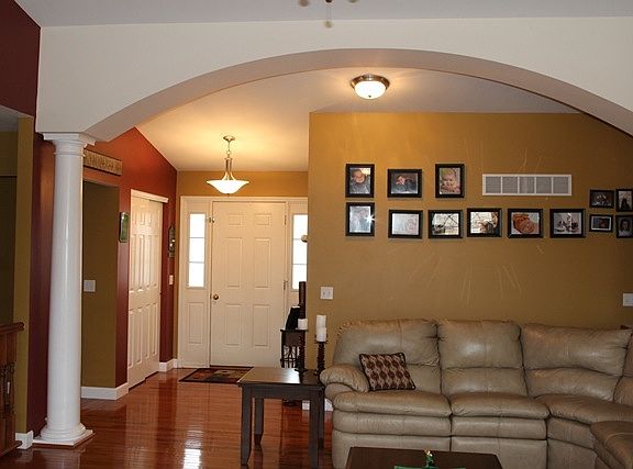 ELEGANT ranch plan with 3 bedrooms & 2 baths, 3-CAR garage, MAIN LEVEL LAUNDRY, just 4 blocks to Peine Ridge Elementary, PEINE PARK & SPLASH STATION AQUATIC CENTER! Charming COVERED PORCH & manicured landscaping, 0.27 acre lot, wood fence perfect for kids/pets. OPEN PLAN with VAULTED GREAT ROOM, arches & columns, ceiling fans, palladian windows, surround sound, cozy FIREPLACE with mantle. GLEAMING HARDWOOD in entry, great room & dining. NEW CERAMIC TILE in kitchen, breakfast, laundry & baths. Bountiful WOOD KITCHEN CABINETS, breakfast bar with pendant lighting, tile backsplash, butler pantry, sunny bay window, dining area, sliding doors to gorgeous yard. Relaxing master suite with WALK-IN CLOSET, his/hers vanities, GARDEN TUB & separate shower. EXPANSIVE BACK YARD with PATIO is ideal for fresh-air entertaining, gardening & play. FULL LOWER LEVEL with tons of storage & potential to double your living space, rough-in for future bath. HSA HOME WARRANTY PROVIDED TO BUYER!