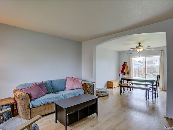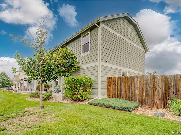 Welcome home to this lovely two story in Wolf Creek Run with 4 bedrooms, 2 bathrooms, and an upstairs laundry. This west facing home offers great shade and comfort in the summer afternoons, a private and fenced backyard with sprinkler system, utility shed, garden boxes and a green cone solar digester for those who love to garden. Enjoy the spacious living and dining area, bedroom, 3/4 bath, and kitchen on the main floor and 3 bedrooms, full bath, and laundry on the upper floor. The primary bedroom has a walk in closet and the washer, dryer, stove, dishwasher, microwave, and refrigerator are included. Interior and exterior paint was completed within the last 3 years and a new roof will be installed before closing. This community offers a large park, playground, pool and pavillion in the center of the neighborhood and front yard mainenance and trash pickup done by HOA. There is no parking on the streets. However, an overflow parking lot is located just west and north of this home. Just north and west of Straburg with quick access to shopping in Bennett or the Denver Metro area. Call today for your private showing of your next home where you will find a great place to experience a rural community but with quick access to the city. For a virtual tour you may click on the icon or paste this link to your browser: https://my.matterport.com/show/?m=K7zrSoEgTH6&mls=1