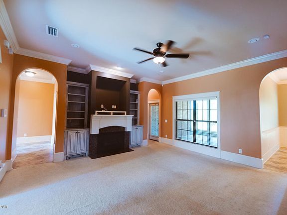 - Interior: Fireplace-Electric, Ceiling Crwn Molding, Floor Tile, Split Bedroom, Window Treatment All, Breakfast Bar, Built-In Bookcases, Kitchen Island, Security System, Ceiling Tray/Cofferd