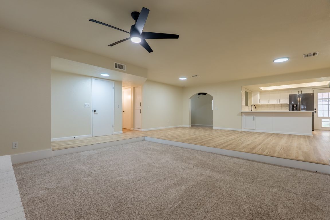 Centrally located and recently remodeled, this single-level home blends fresh finishes with easy everyday living. A clean stucco exterior, oversized driveway, and two-car garage deliver strong curb appeal and plenty of parking. Inside, the open living area showcases new-look plank flooring, neutral paint, and a brick-accent fireplace that anchors the space. ...