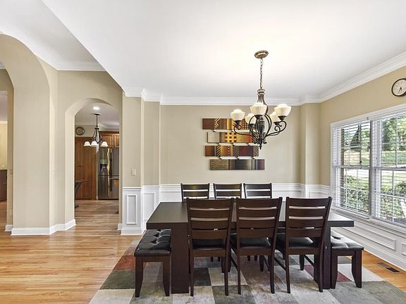 Beautiful ranch in this sought-after, established community in the Cherokee Bluff School district. Very open floorplan has high ceilings and heavy trim detail throughout. Spacious master suite with hardwood floors, vaulted ceilings and ensuite bath with whirlpool tub. Outdoor patio overlooks private yard and wooded outdoors. Huge bonus bedroom with bathroom upstairs would make perfect teen suite or private office space. Finished basement includes second kitchen and an additional 2 beds and full bath. Three car garage has lots of extra room for storage. Listed sq footage includes main level only, basement provides an additional approx 2000+ sqft of finished space!
