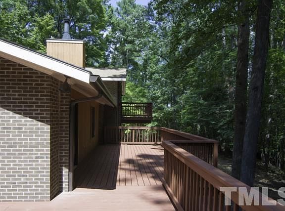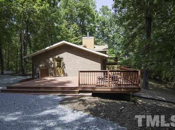 House on 2 AC wooded lot in tranquil neighborhood. County Taxes and Chapel Hill schools. Convenient to UNC, Duke, & RTP. Over 2700 SqFt + 800 SqFt conditioned basement. X-Large MBR with pvt. Balcony and 2 more Bedrooms on upper level. Lower level has Huge Office, Separate Laundry RM, Large Bonus RM & ½ BA with rough in for 3rd Full BA. Bamboo, Tile & Carpet flooring. Updated Kitchen & Bathrooms. Wrap around deck. Superior construction of local builder's home (original owner). Priced Below Appraisal.