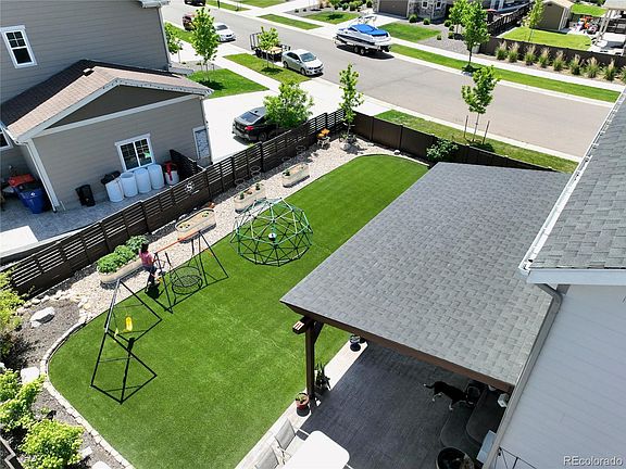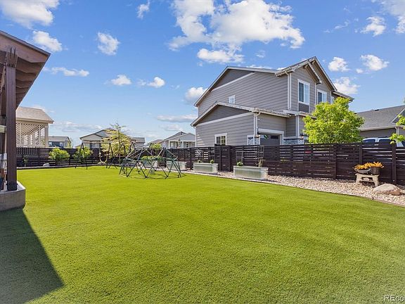 This stunning corner lot property boasts one of the best yards in the neighborhood, featuring a professionally landscaped backyard with a large concrete patio and covering, perfect for outdoor entertaining. The backyard also includes lush artificial turf, creating a low-maintenance oasis.