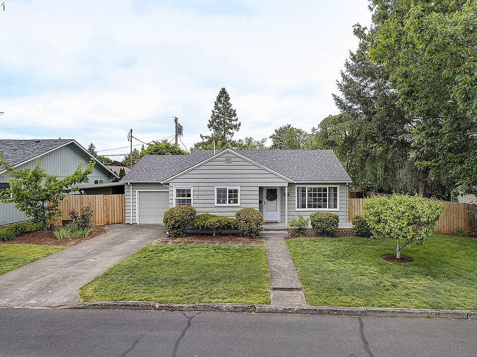 Charming 1950's bungalow with a spacious family room with hardwood floors, 2 large bedrooms located in the old town of Forest Grove within walking distance to Rogers Park. The fully fenced backyard has privacy with an oversized deck, covered area, garden bed, and a 1-car garage: extra deep, LG toolshed, and a Newer roof.