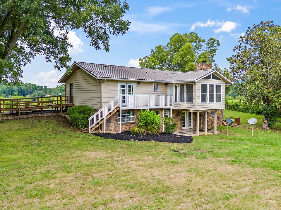 Country setting with mountain views and 6 bedrooms! This one owner home has been lovingly cared for and is ready for a new owner to create their dream space. This basement ranch is situated on a level lot surrounded by pastures and overlooking mountain views on a quiet dead-end road. This property has easy accessibility with only 3 steps to the front door and a ramp that leads to the main level. Inside, you will find gorgeous hardwood floors and light streaming in from the abundant windows. On the main floor, there is a living room that leads to the formal dining area and a sunroom with windows that overlook the property. Off of the dining room is the kitchen with an eat-in bar. This leads to the laundry room with a utility sink and the attached two car garage. The master bedroom has a private full bathroom and French doors that lead out to the backyard. There are an additional two bedrooms and a full bathroom on the main level. Downstairs has been finished with tile floors, a large second living room with backyard access, three additional bedrooms, and a full bathroom. This basement boasts tons of storage space with a large walk-in storage area and another unfinished area with exterior access.