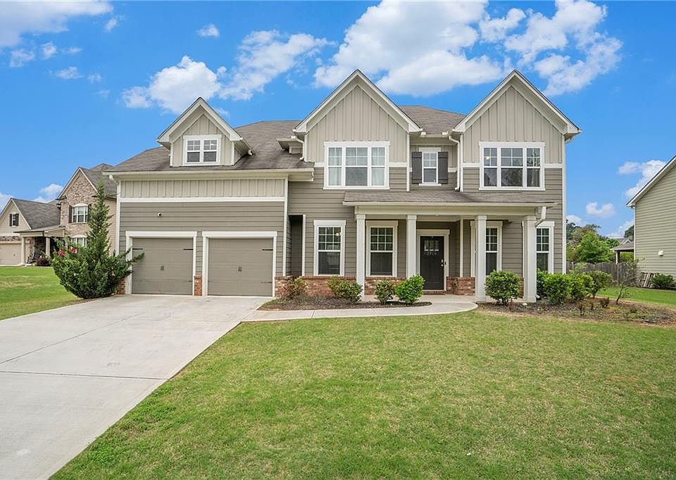 Beautiful two story craftsman style home located in the quaint community of Flint Hill Park. This home offers generous space for a growing family with four bedrooms upstairs and a guest suite on the main. Traditional style living with a formal dining room, office, and living area. The kitchen is nicely equipped with a large kitchen island and stainless steel appliances The two story family room gives the home an open and airy feel. On the second floor you will find a private ensuite along with 2 additional bedrooms that share a hallway bath. The owners retreat is classic and the spa- like bath includes a large soaking tub. This home is the perfect blend of comfort and convenience with close proximity to Dogwood Golf Club and Silver Comet Trail offering a fantastic opportunity for outdoor recreation and leisure.