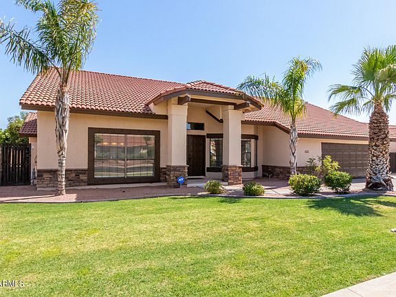 Your dream home is finally here! This beautiful 4 bed, 2 bath property offers great curb appeal, a lovely stone facade, and a manicured landscape. As you step through the front door, you are greeted by a welcoming foyer, wood-look tile flooring, stylish chandeliers, so much natural light, and vaulted ceilings, creating an airy atmosphere that extends into the formal living and dining rooms. Continue to the spacious great room & you'll find a cozy fireplace, a perfect spot for a comfortable gathering. Gorgeous kitchen boasts ample wood cabinets, tile backsplash, SS appliances, granite counters, and an island w/a breakfast bar. The main bedroom is a serene sanctuary showcasing a double-door opening & patio access and an immaculate ensuite w/dual sinks & separate shower/tub. The garage has built-in cabinets for added storage. The backyard is an oasis, highlighting a relaxing covered patio & a crystal-clear swimming pool perfect for hot summer afternoons! Must see!