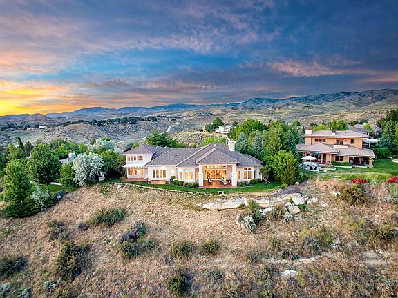 Single level foothills home w/city views, in one of Boise’s most sought-after communities, Somerset Ridge. Minutes from everything Boise has to offer. Mountain bike/hike in Hulls Gulch w/private trailhead out your back door. Comm pool, park & tennis are minutes away. Downtown Boise is 5 to 7 minutes, schools within walking distance. Special foothills location w/mature landscaping. This completely updated home offers 4158 sqft on a single level, featuring a split plan. Primary suite, oversized office & powder on the East wing. 3 bdrms, laundry & 2 baths on the West wing. Additional 513 sqft bonus room on the 2nd floor. All of this w/a stunning, well appointed, modern designed great room space w/views of the city & Owyhee Mountain range. In addition, this home features a heated 5+ car garage w/drains, sound & built-in storage. Rare find in desirable Somerset; quality construction, renovated and barely lived in. Front entrance has new custom doors, kitchen features Thermador appliances, 60-inch six burner range,